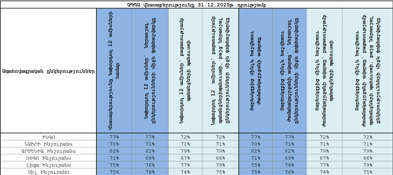 Ներկայացնում ենք Հայաստանում գործող ապահովագրական 7 ընկերությունների ԱՊՊԱ վնասաբերությունը 31․12․2025թ․ դրությամբ․